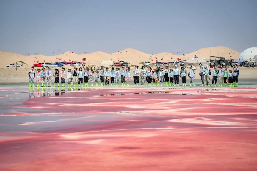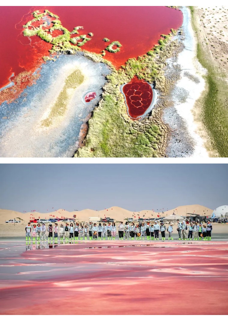 今日途径火爆网红打卡点【地球心脏-乌兰湖】,在腾格里沙漠深处的无人之境,有一颗鲜红的,正在跳动的“地球之心”,这里没有人烟,也没有信号,这是一片炙热的红色湖泊,在地球上沸腾,就像是地球跳动的脉搏。走在湖边,就像行走在一盘巨大的粉色调色板上,如果不亲眼所见,你绝对不会相信这些现切的雪花牛肉和灌满石榴汁的湖泊是真实存在的。