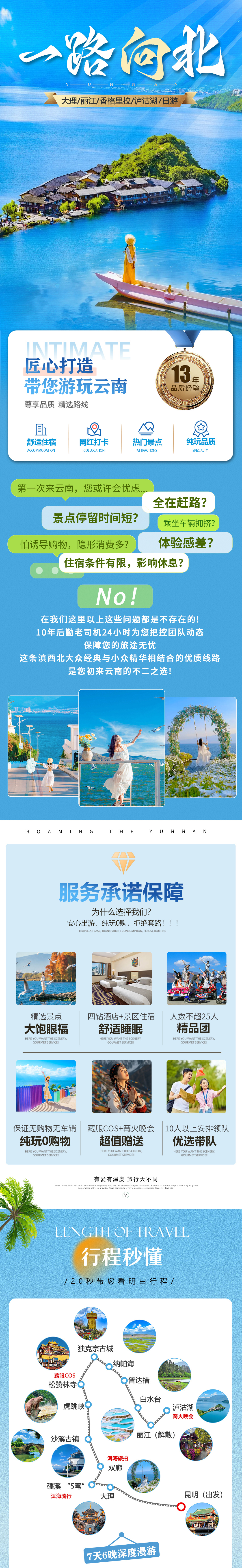 6.【网红合集】:大理磻溪S弯、双廊天空之境、《去有风的地方》沙溪古镇、惊涛骇浪虎跳峡、香格里拉、独克宗月光城、《司藤》纳帕海、小布达拉宫松赞林寺、绿野仙踪普达措公园、棉花堡白水台、风情女儿国泸沽湖,网红打卡一线涵盖。
