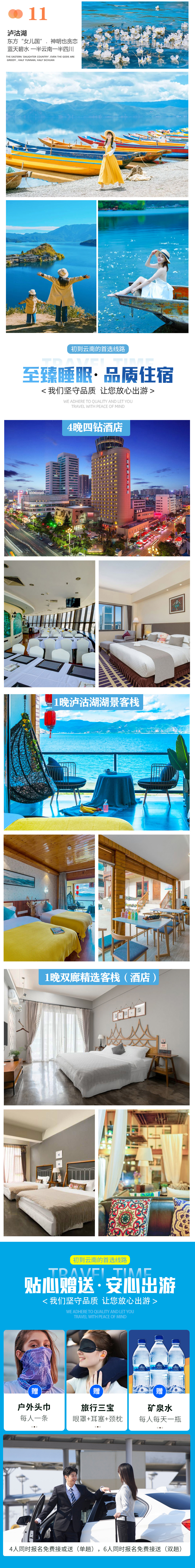 5.【住宿升级】:全程4晚市区四钻酒店+1晚泸沽湖湖景客栈+1晚双廊景区精选客栈(酒店)。