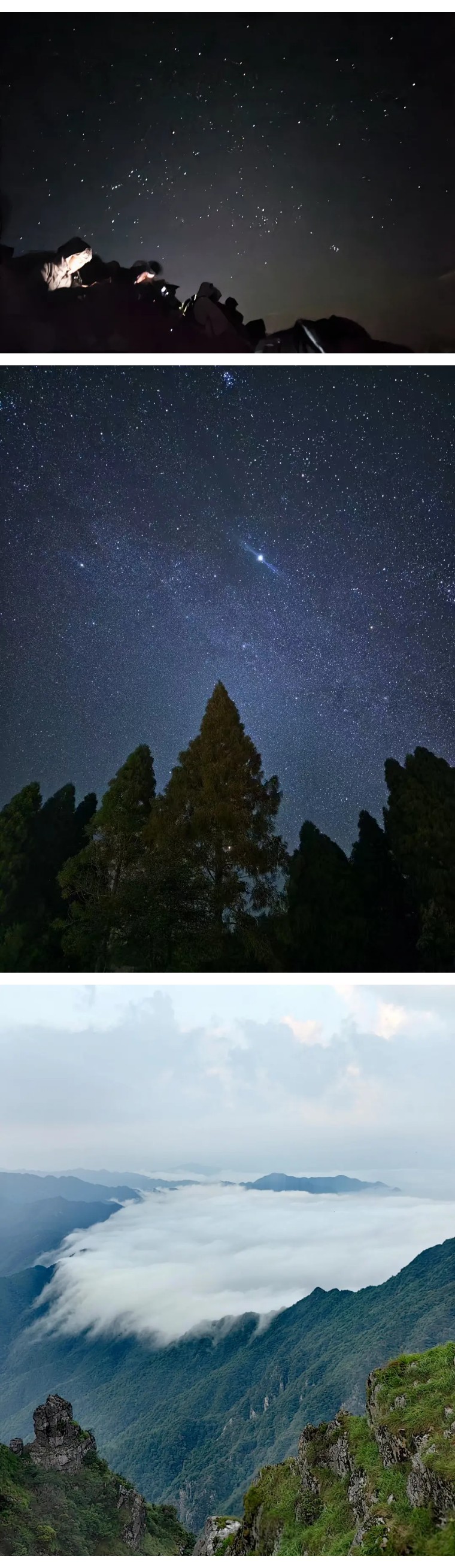 相较白天,凌晨夜爬不仅避开了夏季的酷暑,也更容易看到八面山流转的星河、日出霞光和那如流水般的云海