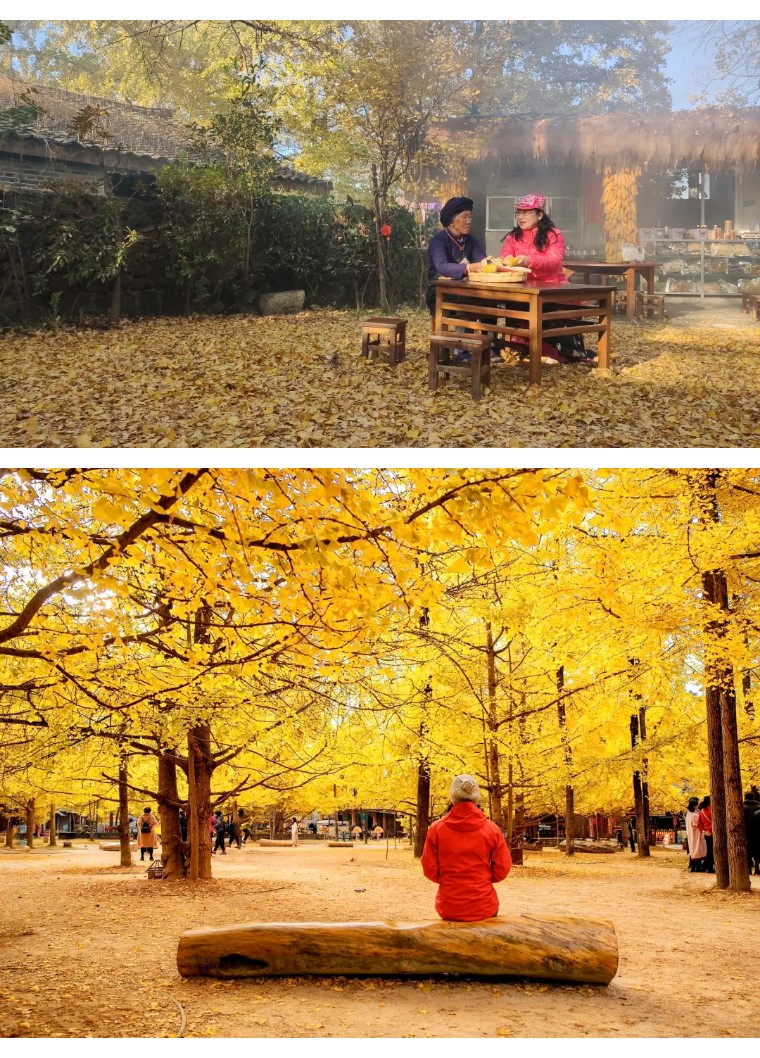 清晨,伙伴们可以感受炊烟袅袅,宁静悠远的【银杏村】。避开了白天熙熙攘攘的人群,小村露出了她本来的面貌,漫步在村中,闻着银杏的清香,踏着沾有露珠的银杏叶,一片宁静祥和。电影《武侠》中,甄子丹所演角色就隐居于此。“村在林中,林在村中”,全村3000多棵珍贵的古银杏树让这个小村庄显得古朴和深邃。每年深秋,房前院后,黄叶纷飞......