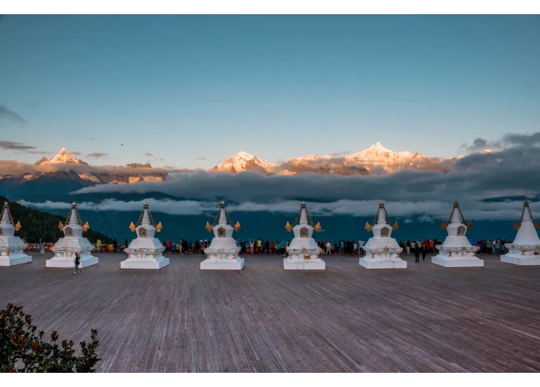 然后继续往前行驶,傍晚来临之际我们将到达酒店,傍晚可到飞来寺观景台观看梅里雪山,近距离感受这座神圣的雪山。天气较好的时候可一睹梅里雪山的绚烂晚霞,当整个霞光铺满雪山的上空,那一刻的震撼是此生都不会再见到的。