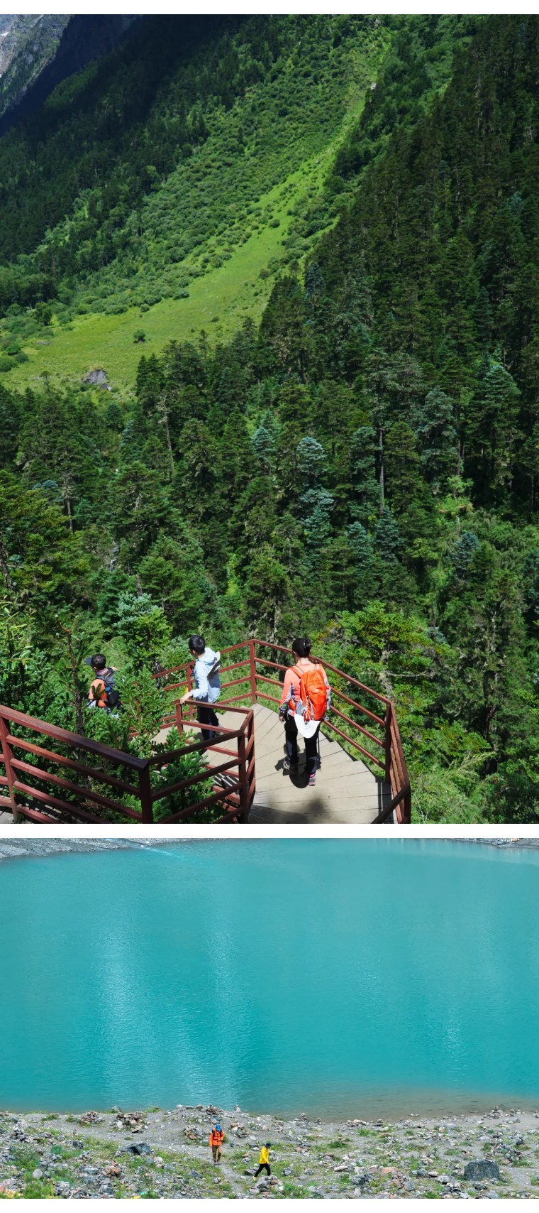 进入原始森林,而后继续前行,到达【笑农大本营】,这里原是中日联合登山队攀登卡瓦格博峰的营地。午餐补充体力后,继续出发抵达【冰湖】。