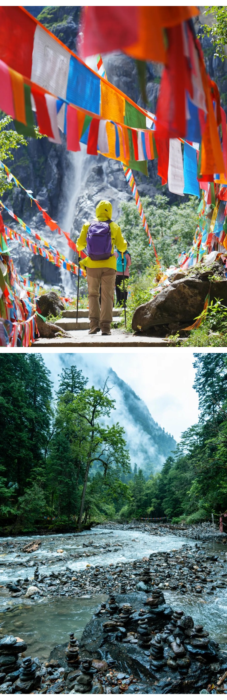 这里可以观看神女峰和五冠峰的全貌,更重要的是这里是朝圣者接受洗礼的地方,只有接受过神水的洗礼,整个朝圣之旅才算是完整,身体和心灵都得到净化,而后我们将原路返回雨崩村客栈休息。