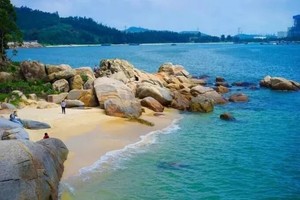 这里还有着粤东洁净的天然泳场,美丽的原始沙滩,海滩上软细洁白的海沙含硅量高达99%,沙质幼细且晶莹洁净。