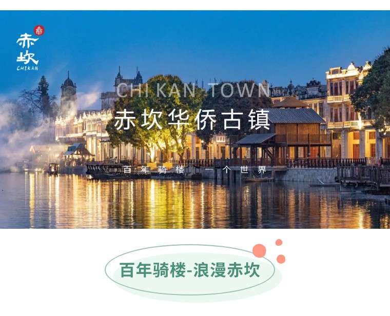 10:30到达【广东赤坎古镇侨乡国际旅游度假区】,以历史骑楼街区作为核心,打造集观光游览、休闲度假、商务会展、文化创意、和古镇体验功能为一体的综合休闲旅游度假区、世界级旅游目的地。度假区总规划面积约 120 万平方米,坚持在保护的基础上进行活化利用,以历史场景为脉络,形成古镇集华侨历史文化、商业综合、舒适休闲度假和独特的岭南骑楼建筑景观的聚集带,一河两岸独特的中西合璧建筑魅力,融入古镇繁荣的市井生活方式,为游客带来穿越时空的超凡体验。