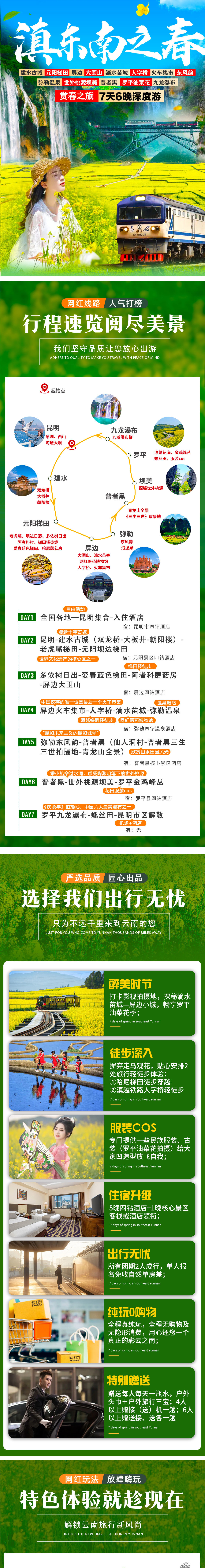 【醉美时节】:独家设计规划经典滇东南环线游,前往《庆余年》《舌尖》《三生三世》《爸爸去哪儿》等影视拍摄地,探秘滴水苗城—屏边小城,畅享罗平油菜花季,带您在最美的季节看醉美的风景。