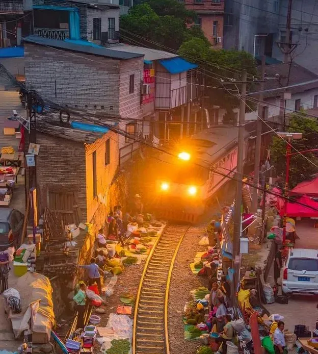 早餐后先前往【白河镇火车集市】(如个别排期对不上周一赶集,我们会特别安排游玩白河镇农贸市场体验当地小镇集市生活+赠送百年滇越-【白寨大桥】,敬请知悉)。不用去泰国和印度,这里是中国仅存的唯一也是最后一个火车市集。滇越铁路的米轨火车,已经在云南穿行了百年,每天两趟会从这里经过,附近的少数民族会着民族服装,背着箩筐,仅每周一上午会来到这里赶集。当早上的火车从这里缓缓驶过这里,火车➕集市的永恒瞬间就会被定格在那一刹那。很多老人在火车轨道集市上售卖水果、蔬菜以及家禽等,非常热闹。这里是淳朴的、真实的云南少数民族聚集地,感受到不一样的生活气息。