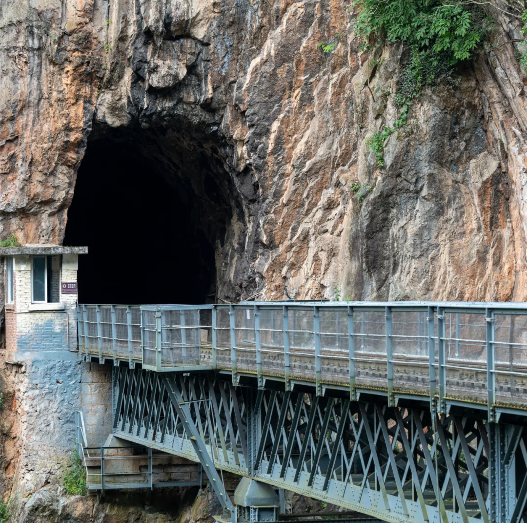 随后沿着国道,途径大片荔枝园后,来到【人字桥村】,我们来一段滇越铁路的【轻徒步体验】,沿着铁轨前行几百米,穿过山洞,近距离的来到桥边,这是800余名中国劳工血泪建成的已经沿用了100多年的的人类奇迹—【人字桥】。运气好,还能看到经过桥上的运输货物的货运火车。看完桥以后就返回下来谷底,沿着峡谷栈道,从另外一个角度还可以看到它的全景风貌。