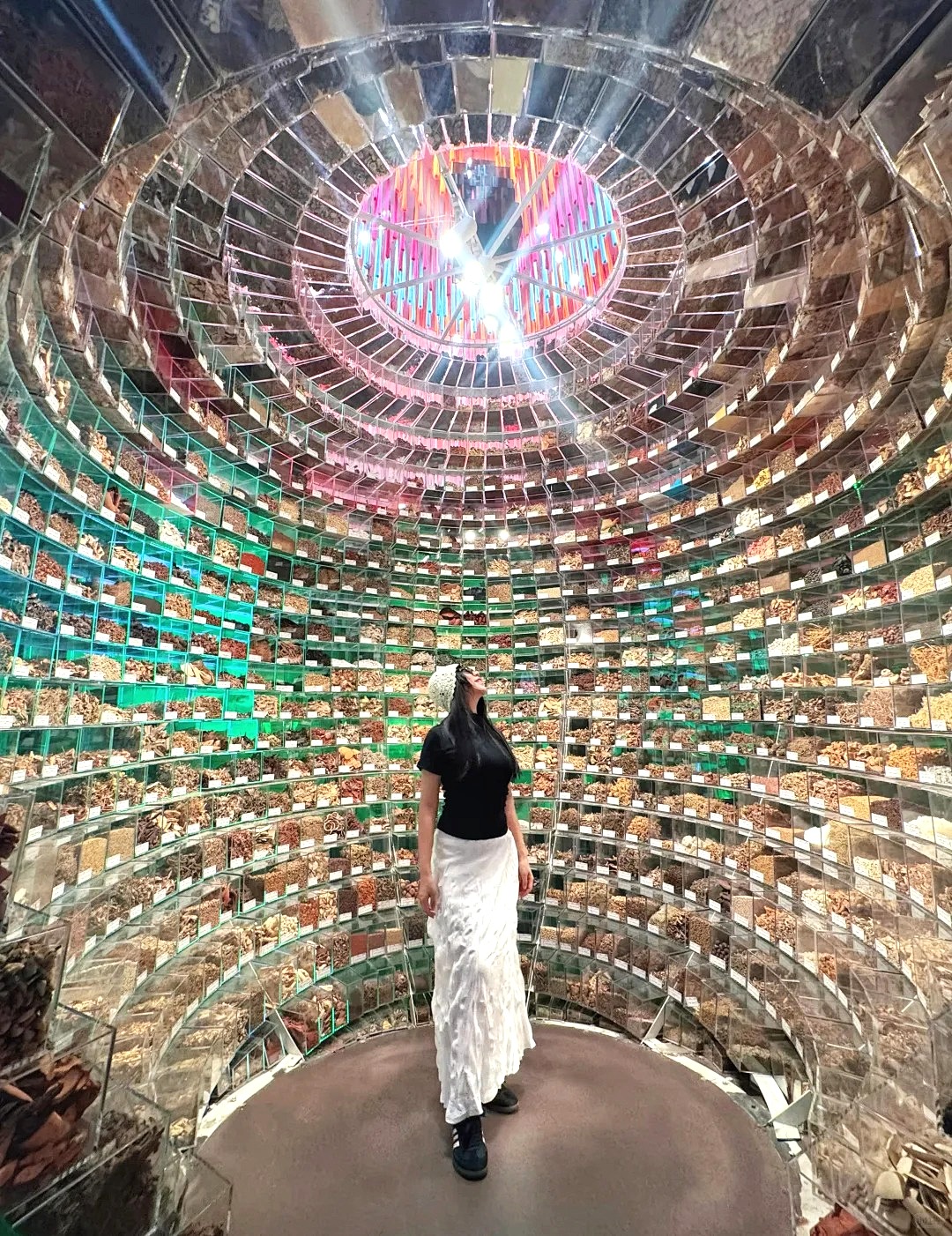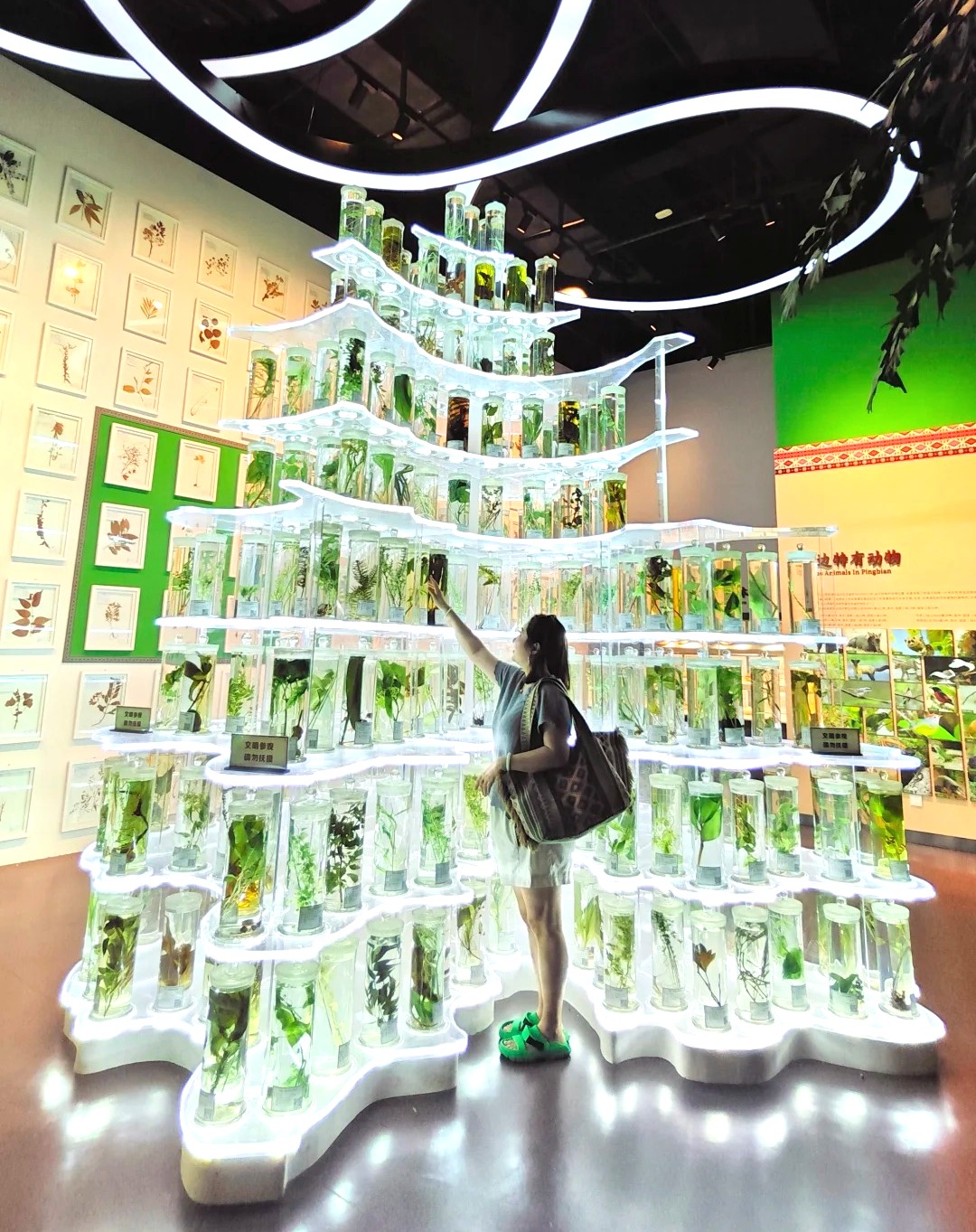 随后来到【网红医药博物馆】,博物馆位于滴水苗城高处,是苗族传统宫殿式风格,形成“层叠错落、飞檐翘角”的视觉效果,里面的活体或标本药材,如半人大的灵芝、开花的三七、切块的龙血树等,设计独特,令人印象深刻,可以了解到蚩尤带领九黎的故事及九黎迁入云南繁衍生息的历史。