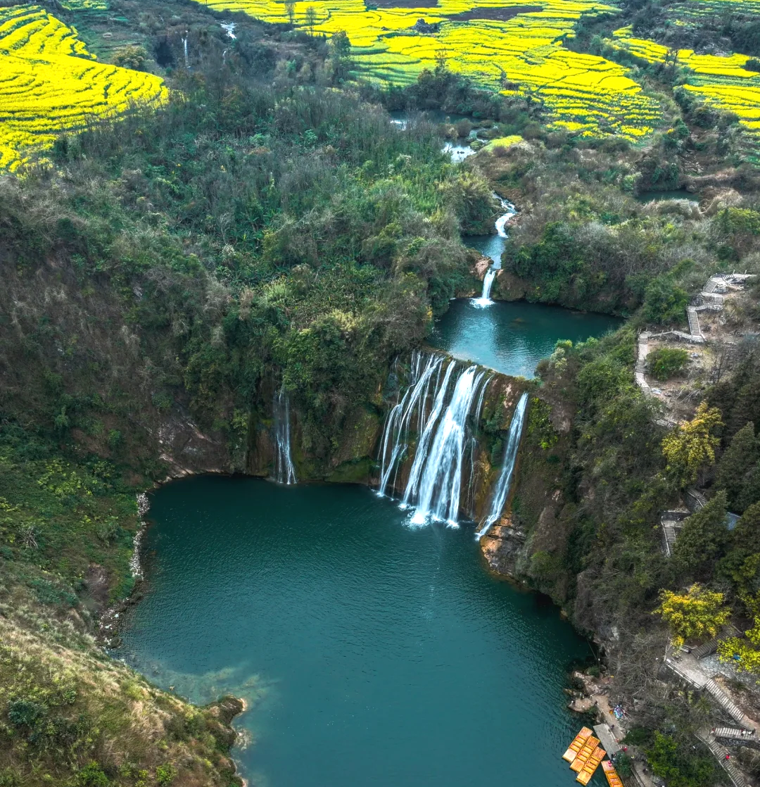亮点:九龙瀑布群+螺丝田油菜花,瀑布与花海,花海与峰林,简直就是完美结合!
