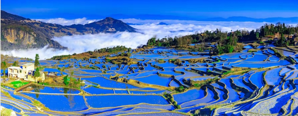 亮点:多依树日出+蓝色梯田+阿者科村蘑菇房+梯田轻徒步+屏边大围山,自然与人文结合!