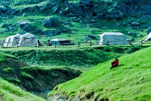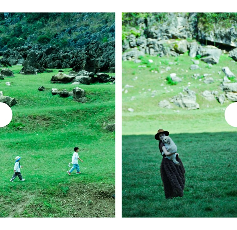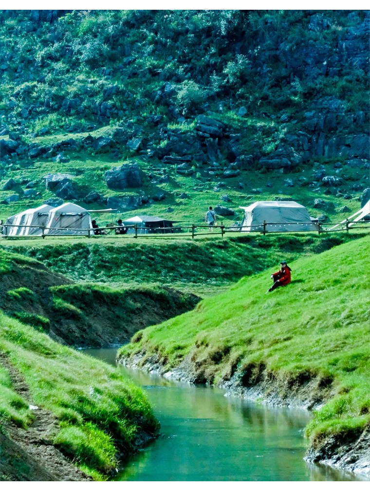 在空旷的山谷中响起阵阵马铃声,拉回童年的记忆,春日暖阳,把山石牛羊和草地照得暖暖的,身体也有温暖舒适的感觉,有一种全身浑然放松难得的松弛感!在这里徒步探险、摄影打卡,每一帧都风格独特,出片率极高。