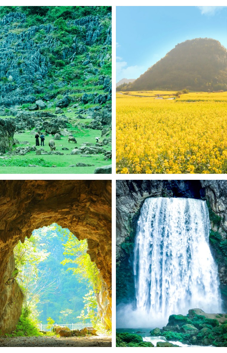 这里远不止有山有水,更有被称为“异域星球”的铜鼓荡石林、全国最早绽放的万亩峰林油菜花海,还隐藏在地下的“寻龙洞”与野生感爆棚的“羊皮洞瀑布”等硬核风景!