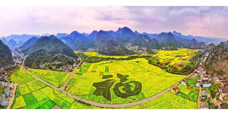 万峰林,离城市不远,却是心灵的归处。近两万座翠绿峰林,环绕着80万亩油菜花田,如同金色的海洋在此盛开。