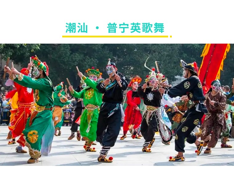 普宁英歌舞经国务院批准列入第一批国家级非物质文化遗产名录。英歌舞是汉族舞蹈形式之一 ,流行于广东的潮汕地区。