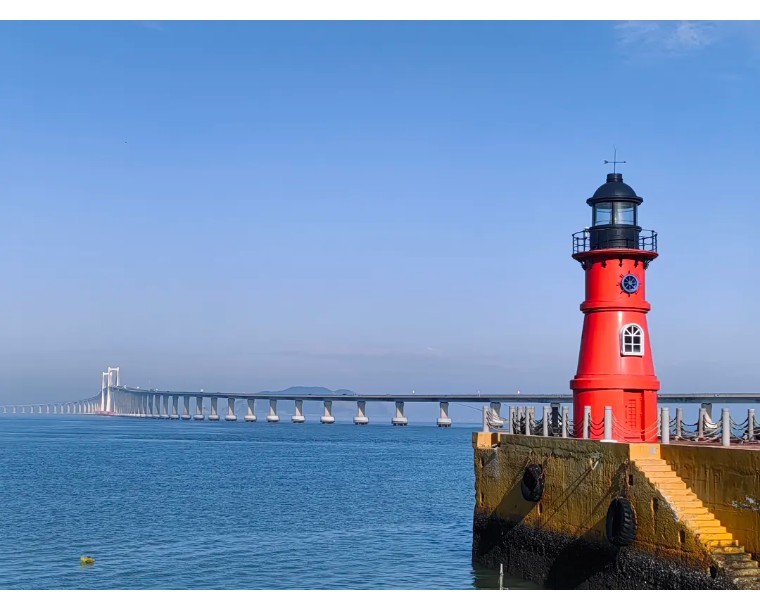长山尾灯塔位于启航广场,灯塔塔身全红色,十分亮眼,风格清新,吸引了众多文艺青年到此打卡。这里还能远眺南澳大桥全景!