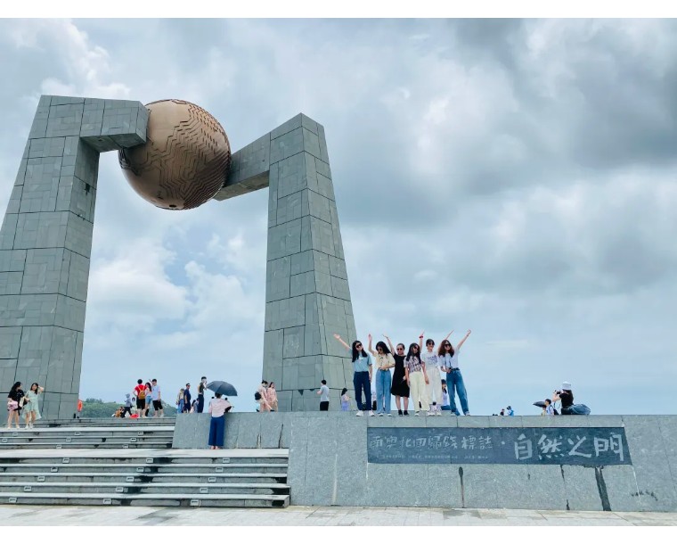 “自然之门”是我国已有的11座北回归线标志塔之一,也是唯一一座位于海岛上的北回归线标志塔。塔身由汉字“门”字演变而来。每年夏至正午,太阳直射北回归线,日影将穿过上方圆球中心圆管,投射地台中央,达到“立杆不见影”的效果。