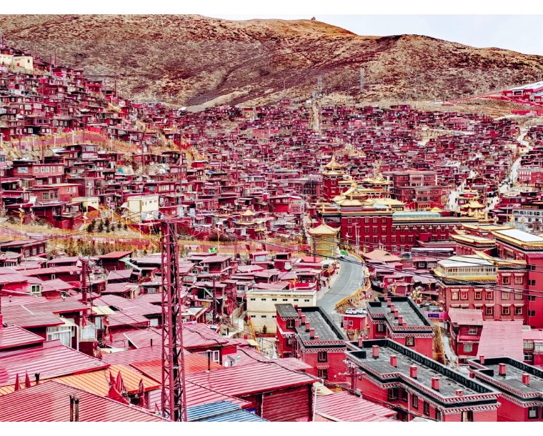 上午从马尔康出发,全程国道,车程较长。下午抵达色达县后,根据个人身体状况和景区开放政策,自由安排活动。色达的核心看点包括五明佛学院的红色木屋群和天葬台。建议傍晚时分等待佛学院的灯火亮起。