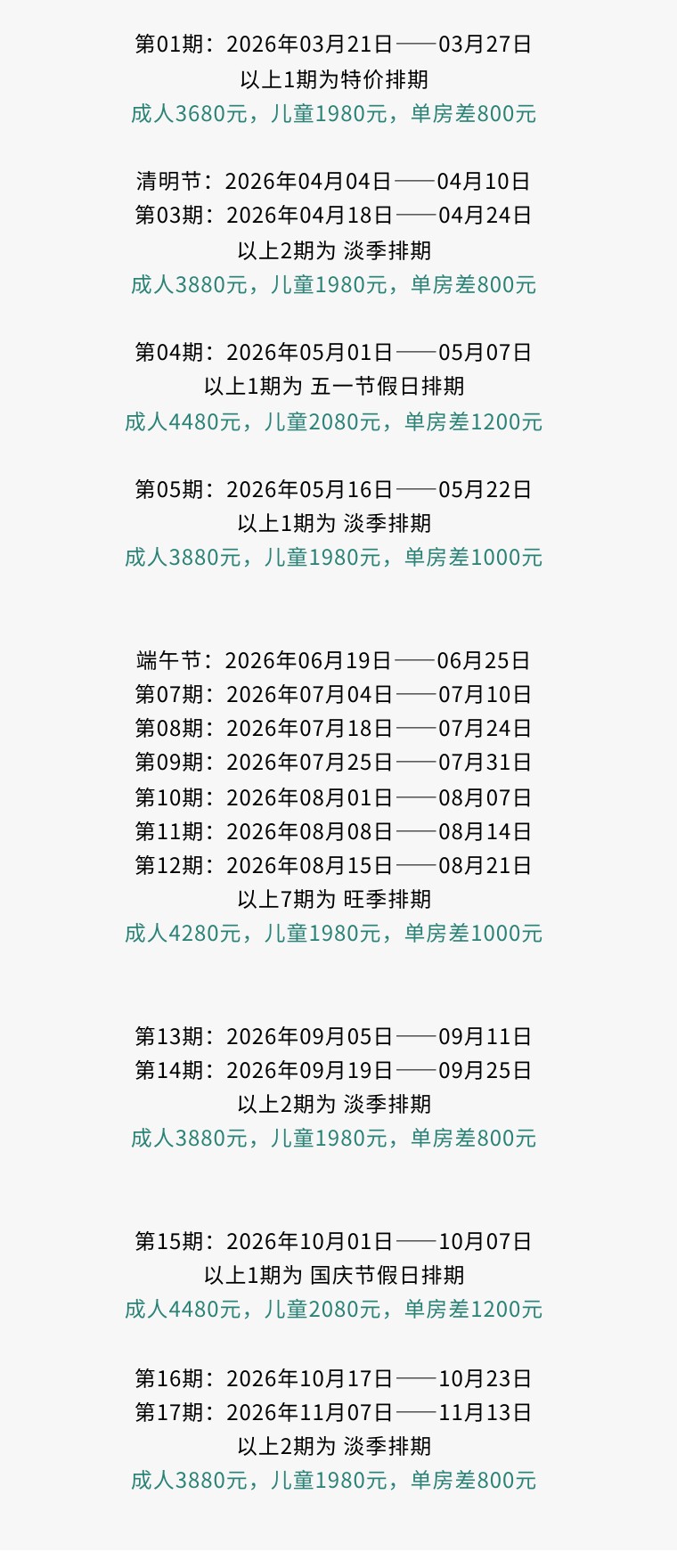 *以上行程仅供参考,最终行程可能会根据实际情况进行微调,敬请以出团通知为准。