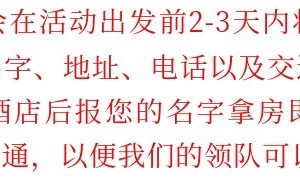 4. 参加者须身体健康;自带常用药品:止血贴,人丹,藿香正气丸,腹可安等!