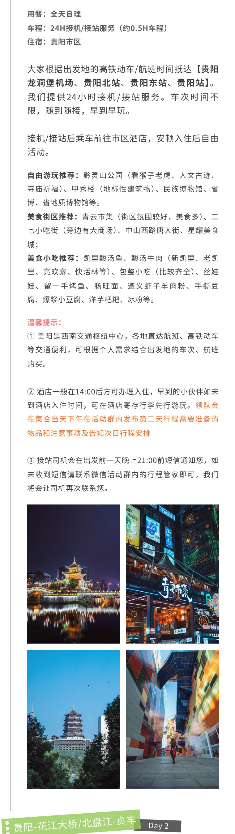 ➀ 交通:各地往返贵阳的大交通费用(可代定全国各地往返高铁动车票,如有需求请联系客服咨询)