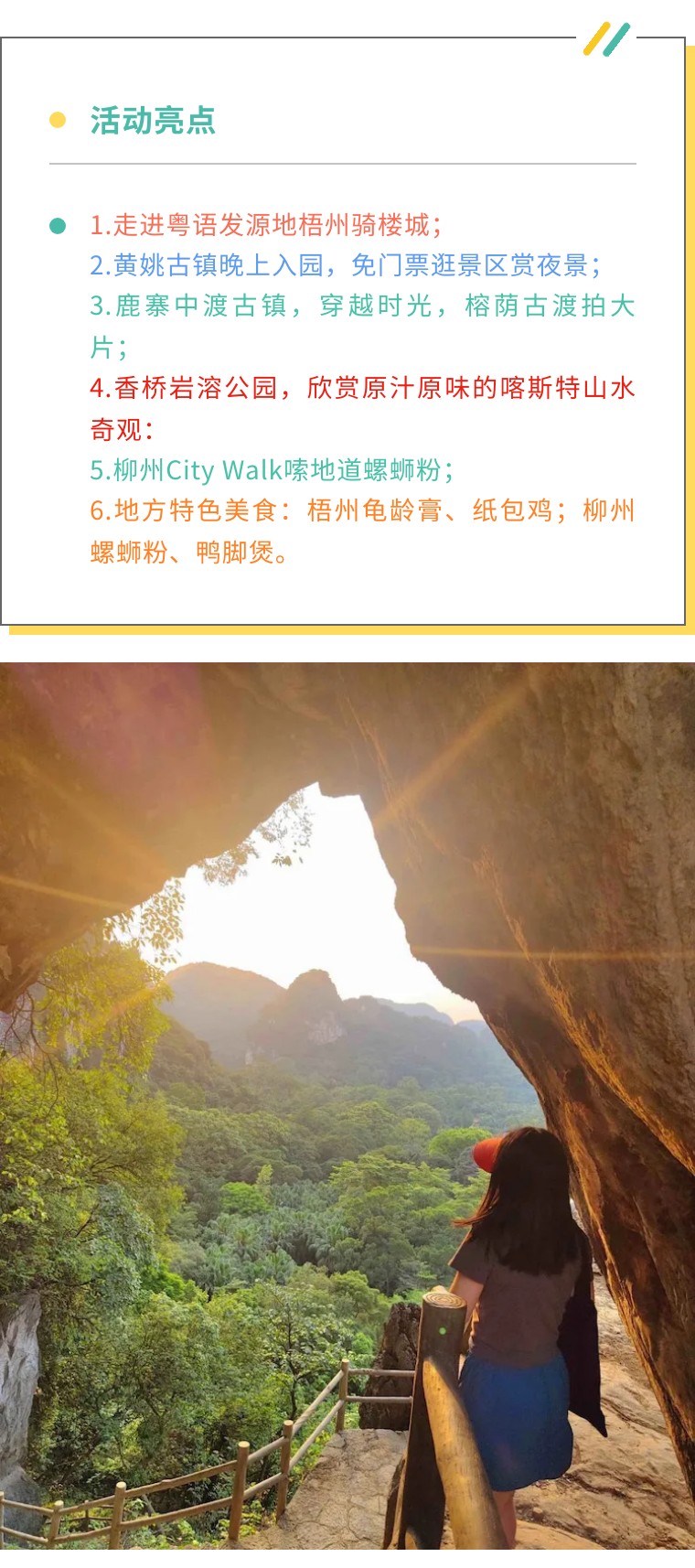 ②住宿:1晚黄姚古镇酒店,1晚柳州市区酒店(2人一间房。单人报名默认安排同性拼房,如需单独住,需补房差)
