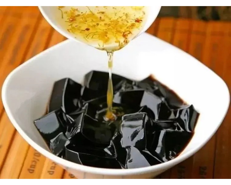 历史悠久的传统药膳龟苓膏。这里也是龟苓膏的发源地,几块钱一碗,可以加各种配料。