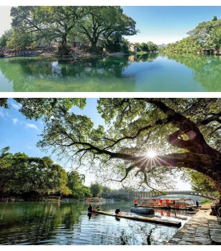 08:00 出发前往全国幸福百强县——鹿寨县,前往游览中渡古镇,隐匿千年的中渡古镇依旧保持着原有的风貌,古树、古桥、古建、古街巷......走进其中,让人仿佛穿越历史,时光也慢了下来。江边的榕树有几百年的树龄,站在榕底下,与古桥合影,一种江南水乡美韵表现得淋漓尽致。