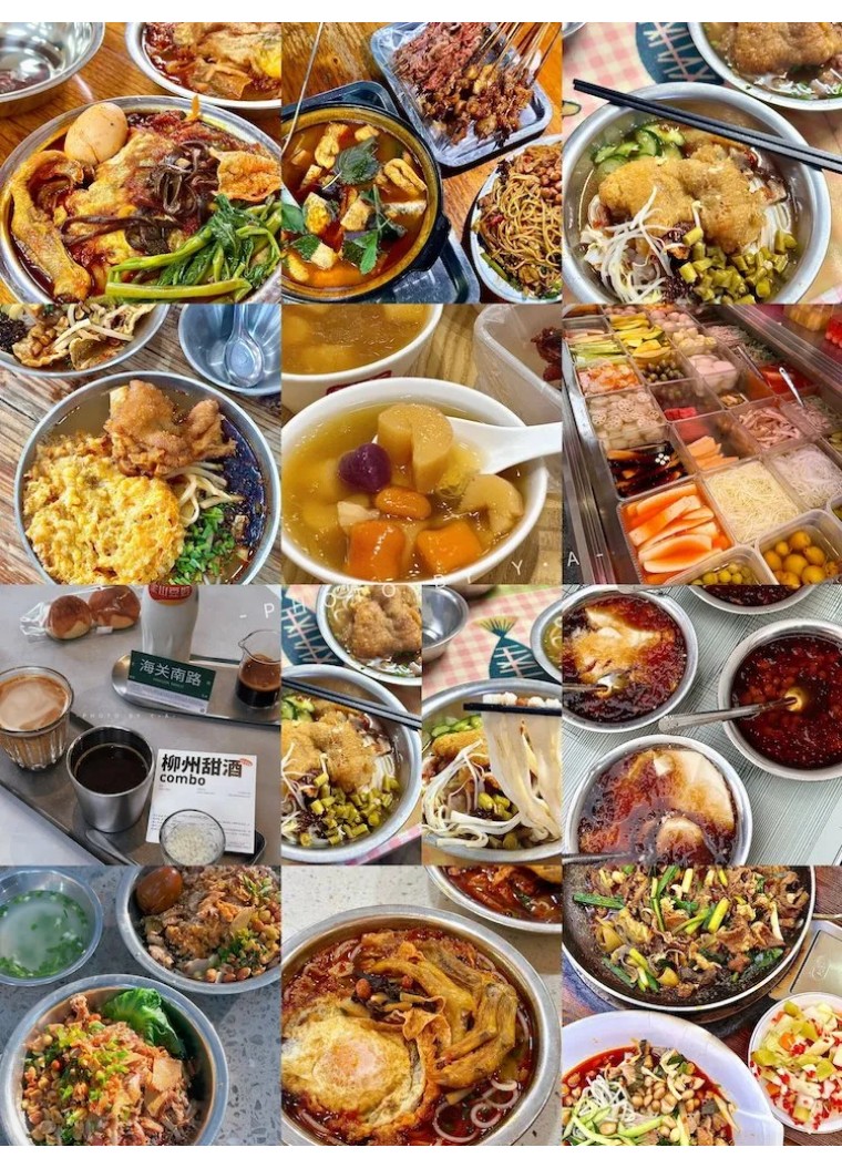 除了螺蛳粉,这里还有汤粉、干捞粉、炒螺蛳粉、猪脚粉等各式各样的米粉以及牛杂、鸭脚煲、卤菜还有豆腐花、炒冰、木薯羹等甜品带着八个胃来都不够
