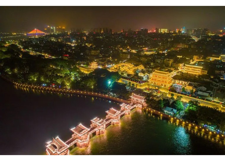 晚上,在韩江边赏古城夜景,看一场免费的凤城河灯光秀。