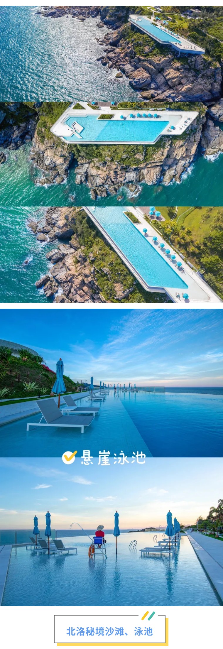 你也可以现场购买山体公园门票,登上山体公园,行走于滨海栈道上,悬崖观海,爬彩虹楼梯,眺望远方蓝蓝的大海,俯视山脚下的银白色沙滩。还可以自费进悬崖泳池参观或游泳。