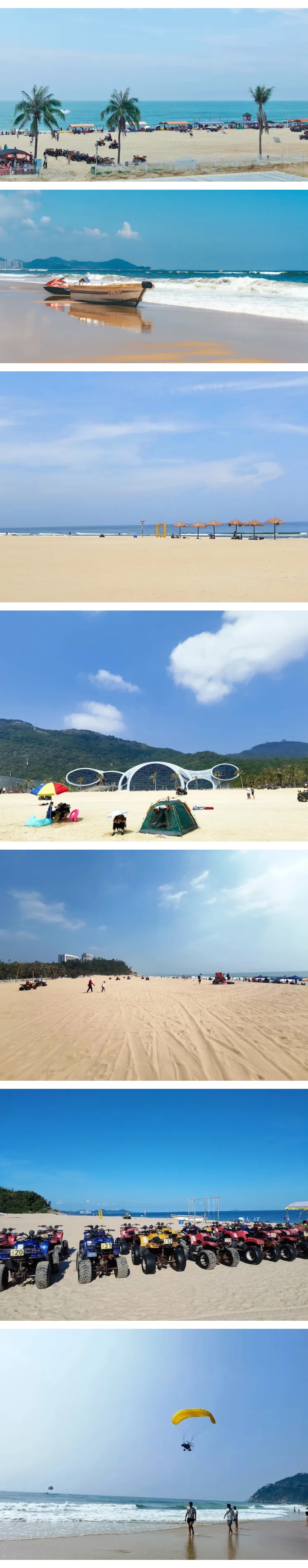 这里沙滩呈东西走向,绵延约2.5公里,沙质细腻,游玩项目多,非常适合在这玩耍。