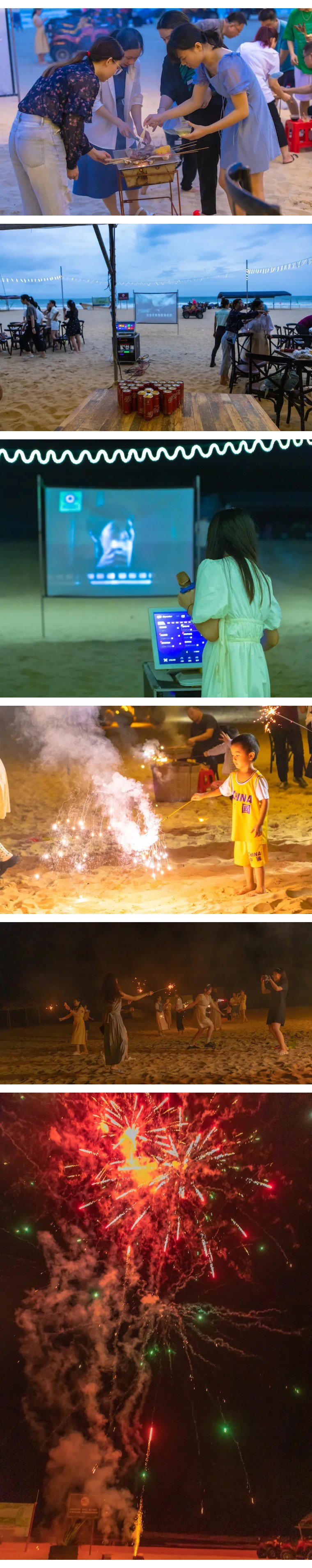 17:30 前往旁边的沙滩开展【烧烤活动】,领队会让商家提前备好食材与炉具。队友们分组,10人一组,齐齐动手,制作烧烤晚餐,面对大海,夕阳西下,直到入夜,迎着海风,放起烟花,唱着歌谣,喝着啤酒~~这才是海边该有的浪漫。