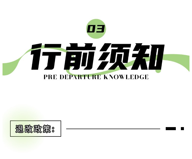 5、行程开始后,因个人原因需提前退团,需签署离团协议,并不退任何费用,敬请理解。