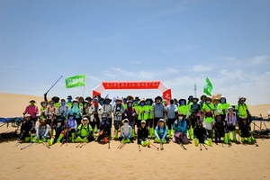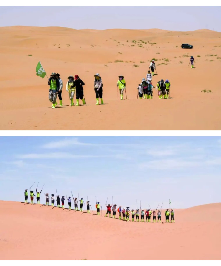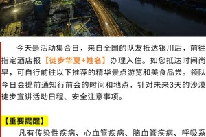 滑沙结束,继续行走10公里左右到达终点! 领队在终点为大家颁发奖牌,集沙瓶,合影留念;午餐过后,大家一起返回银川解散。