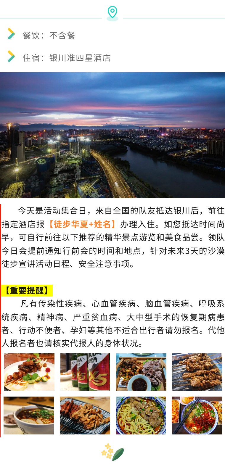这短短的几天,队员们或许已经收获了属于自己的友情,下午大家根据自己的航班或车票时间自行安排返程,也可以前往银川周边,寻找自然人文胜迹,感受大西北的独特魅力,结束西北精彩之旅~