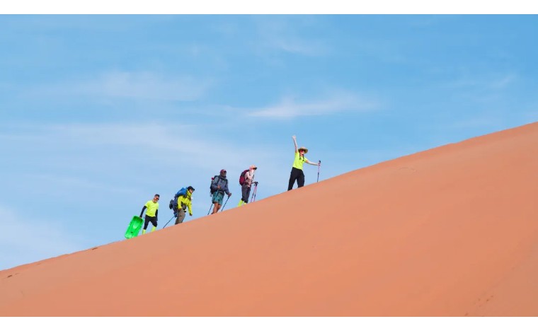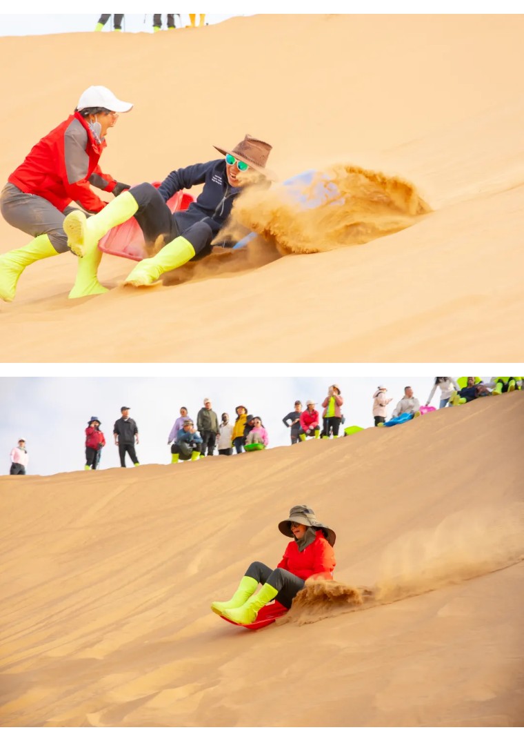 7:00起床,早餐后收拾完营地,翻越大沙山,今日领队选择合适的滑沙地点进行滑沙;