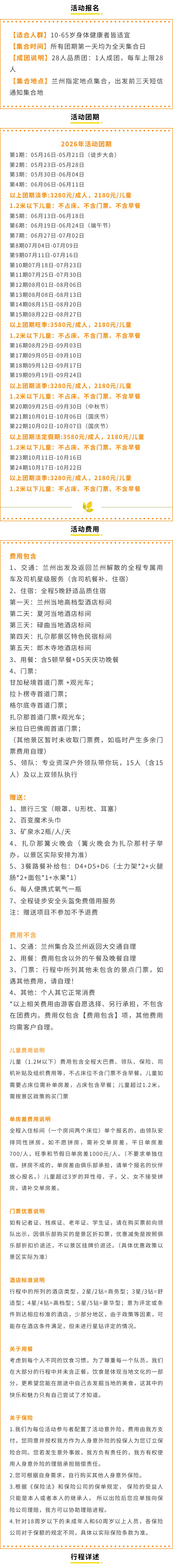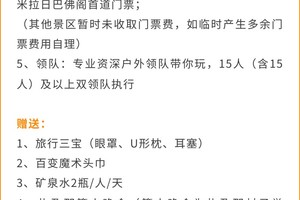 注:行程内时间都为计划时间,如遇暴雨、堵车等情况,具体行程由领队安排。